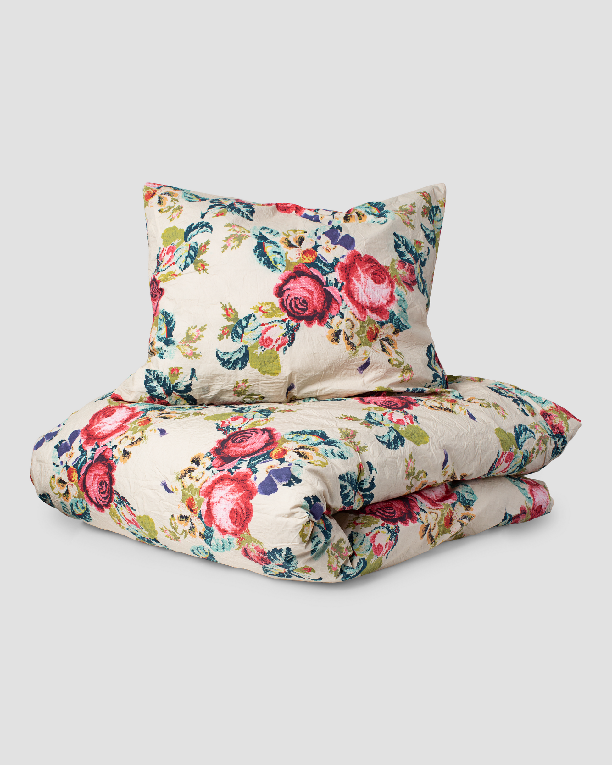 Warum Sie "Aurora" lieben werden: Einzigartiges Design: Farbenfroher Blumen-Print im unverwechselbaren Ewa i Walla Vintage-Look. Hochwertiges Material: Reine Baumwolle, atmungsaktiv und angenehm auf der Haut.Liebevolle Details: Dekorative Bindebänder an Kissen und Deckenbezug statt versteckter Verschlüsse. Slow Fashion Spirit: Langlebige Qualität, die mit jeder Wäsche schöner und weicher wird.Kombinieren Sie "Aurora" mit weiteren Kissen, Spitzen oder Quilts, um den ultimativen „Layering-Look“ zu kreieren, für den Ewa i Walla weltweit geliebt wird.