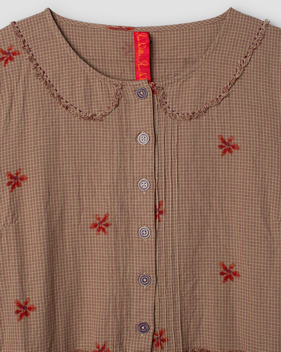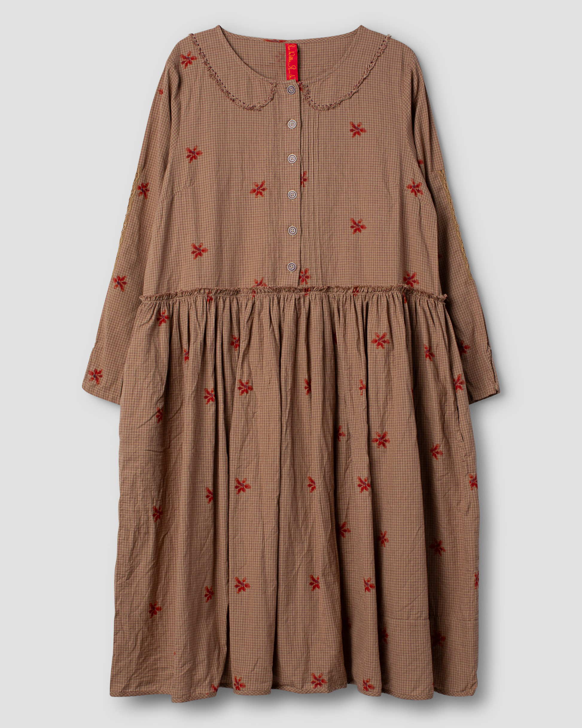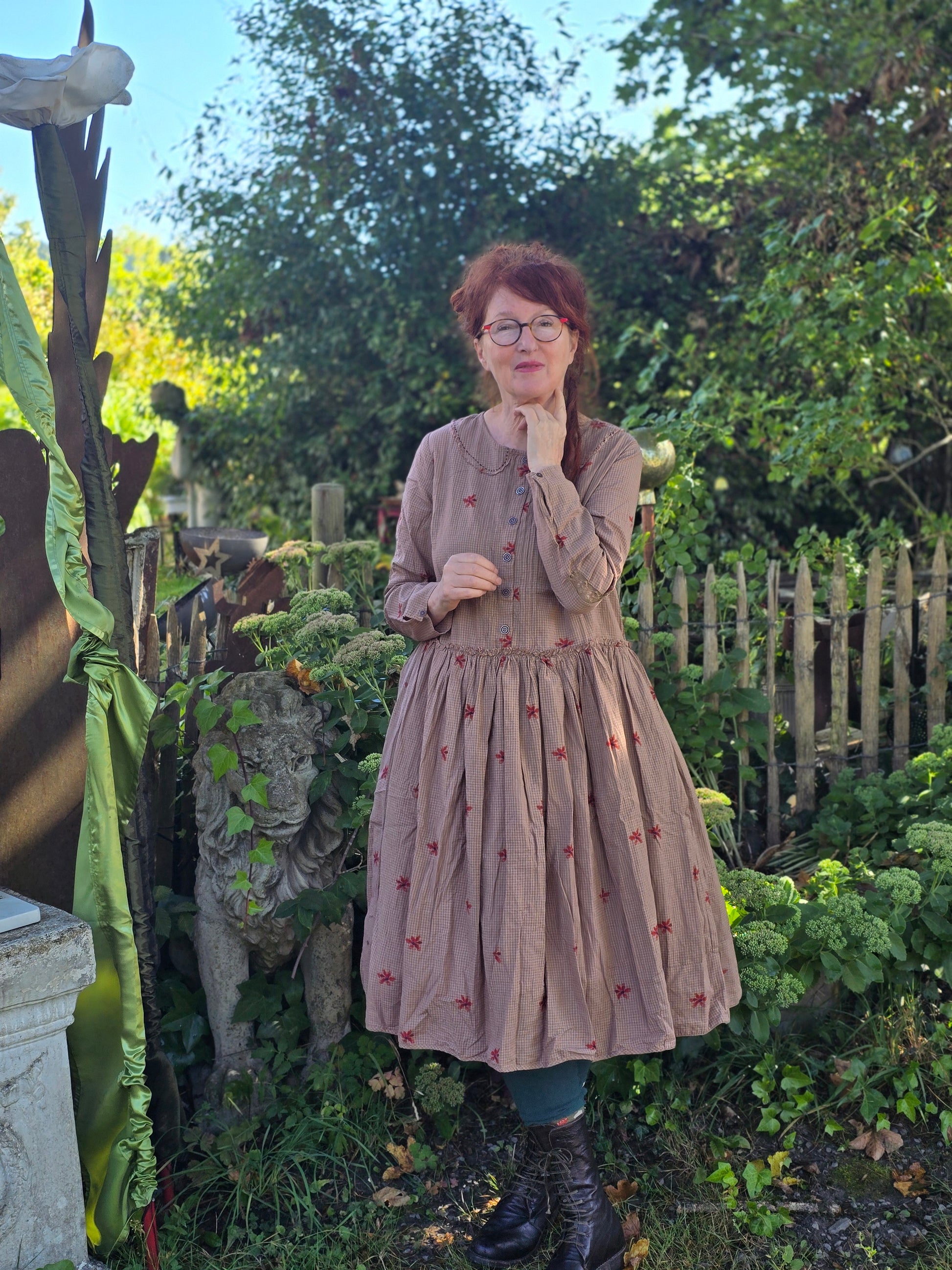 Frideborg ein zart kleinkariertes Traumteilchen. Der schöne kleine Kragen die Knopfleiste vorne die Blümchen lange Ärmel und der etwas weite Schnitt nur schön. Ein Kleid für gemütliche Zeiten