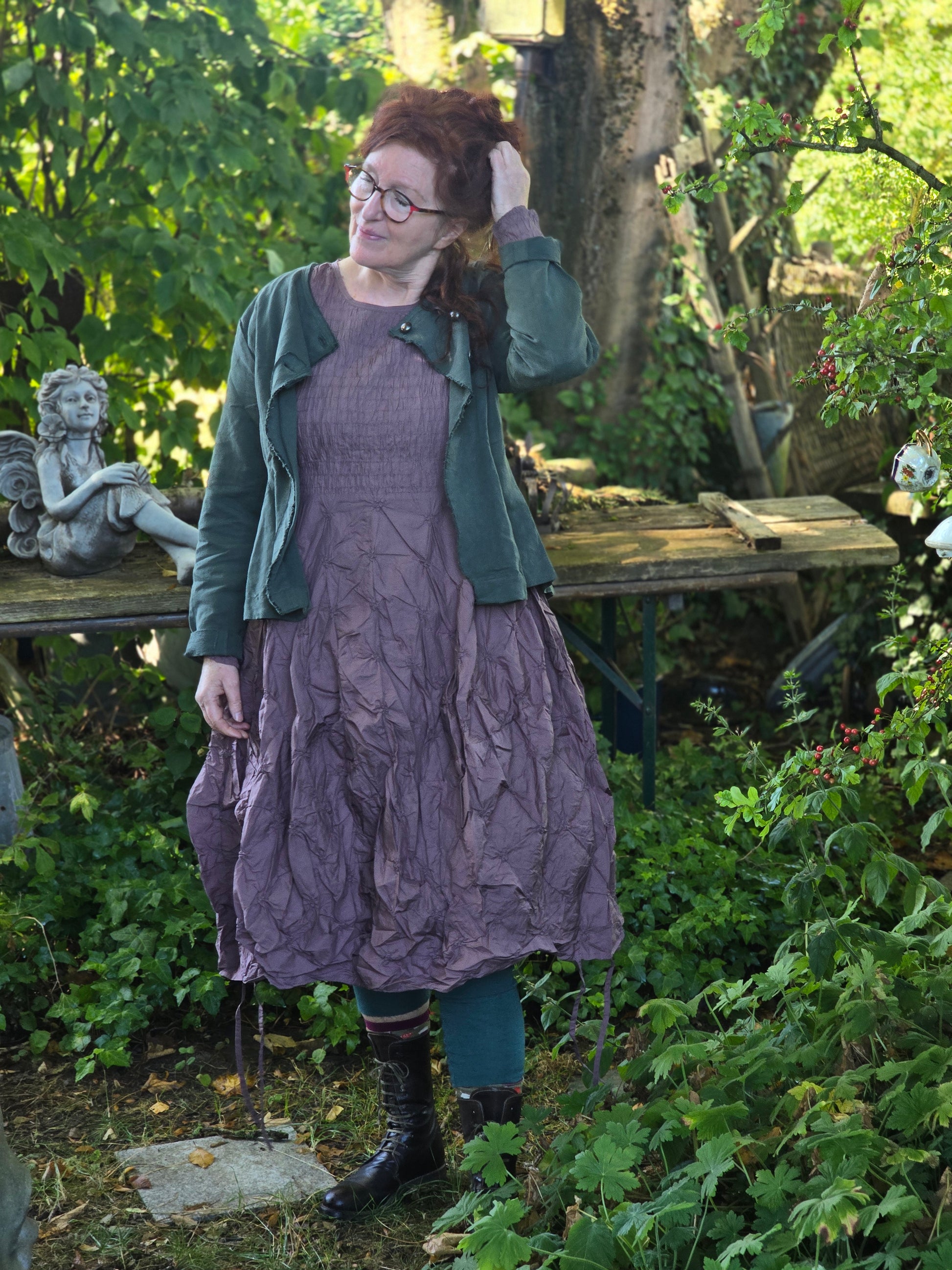 Claire ein so schönes Kleid. Gesmocktes Oberteil mit Rundhalsausschnitt, Knopfleiste im Rücken und Tulpenschnitt, Langarm, gekräschte Baumwolle, gute Länge. Außerdem gibt es hier nur schönes. Ich freue mich darauf