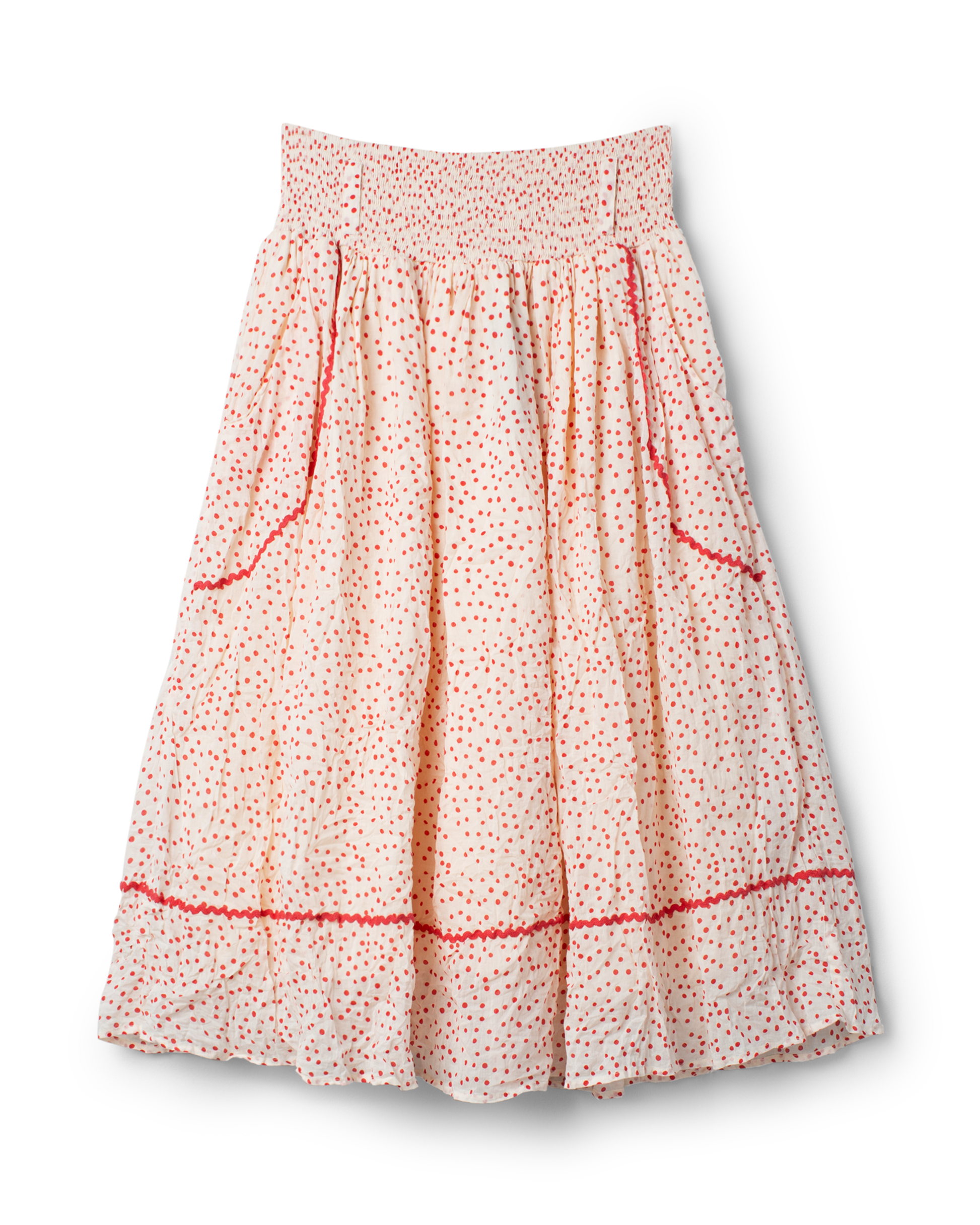Der Rock IDA-MARIE (Artikel 22320) in fröhlichem Rot mit Punkten ist ein echtes Lieblingsstück für die Spring Summer 2026 Kollektion. Gefertigt aus hauchzartem Sommerbaumwoll-Voile, ist dieser Rock extrem leicht und weich – ein Traum für warme Tage, der jede Bewegung luftig mitmacht.