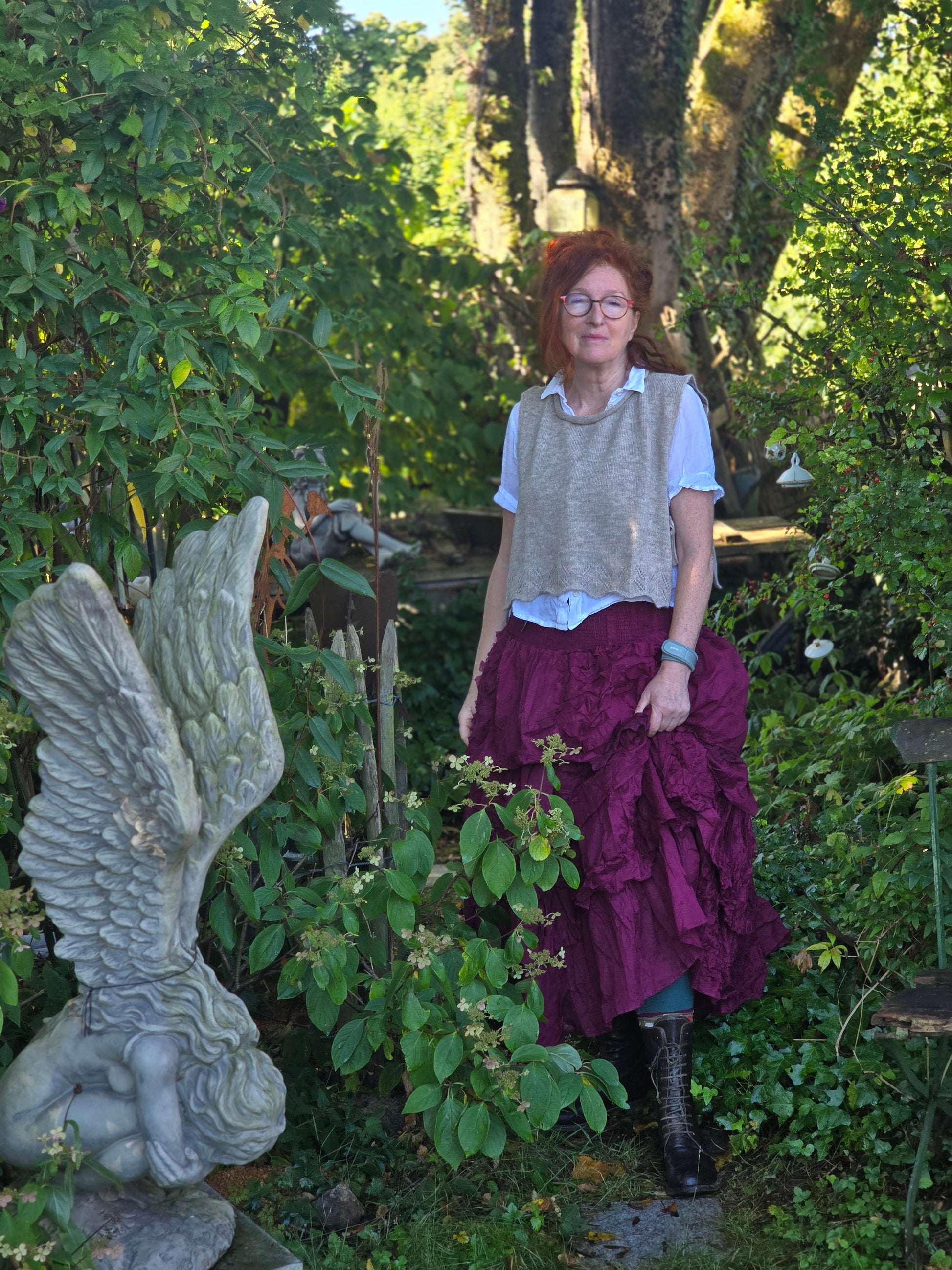 Magda ein echt opulenter und wirklicher Traumrock. Ein Traum in mehreren Stufen rüschig und sehr besonders. Magda fällt in jedem Fall auf. Langer Rock mit coolem Schuh und Jeansjacke getragen eine Augenweide