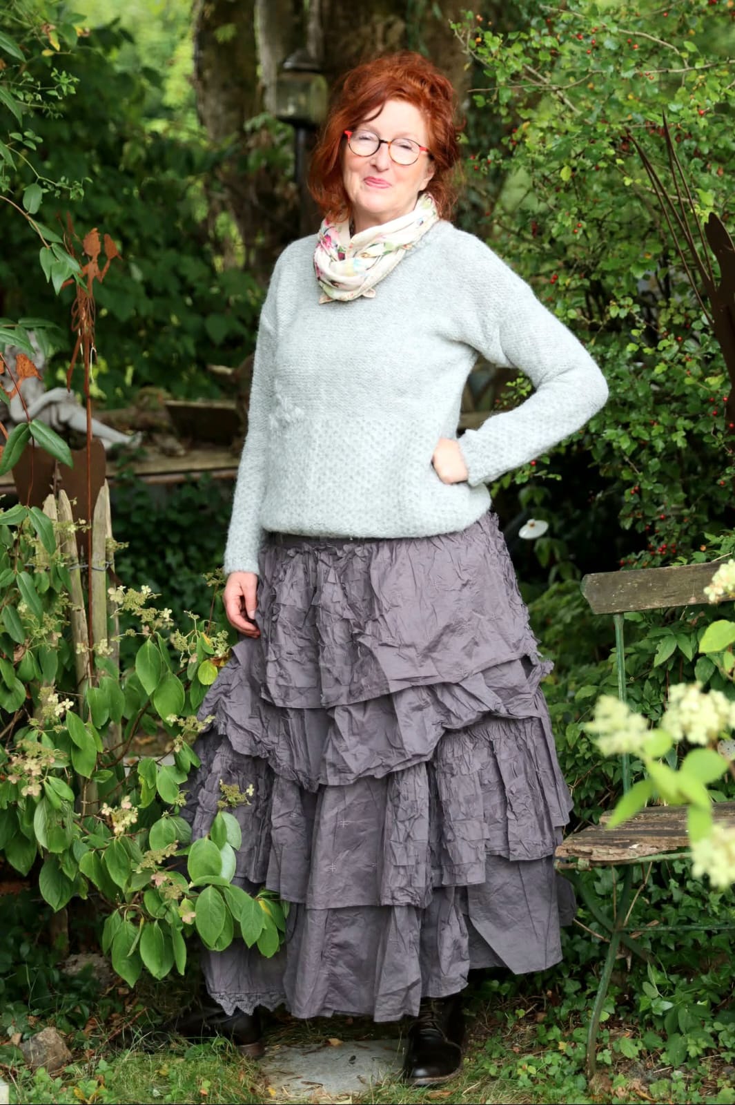 Magda ein echt opulenter und wirklicher Traumrock. Ein Traum in mehreren Stufen rüschig und ganz besonders. Magda fällt in jedem Fall auf. Langer Rock mit coolem Schuh und Jeansjacke trug eine Augenweide