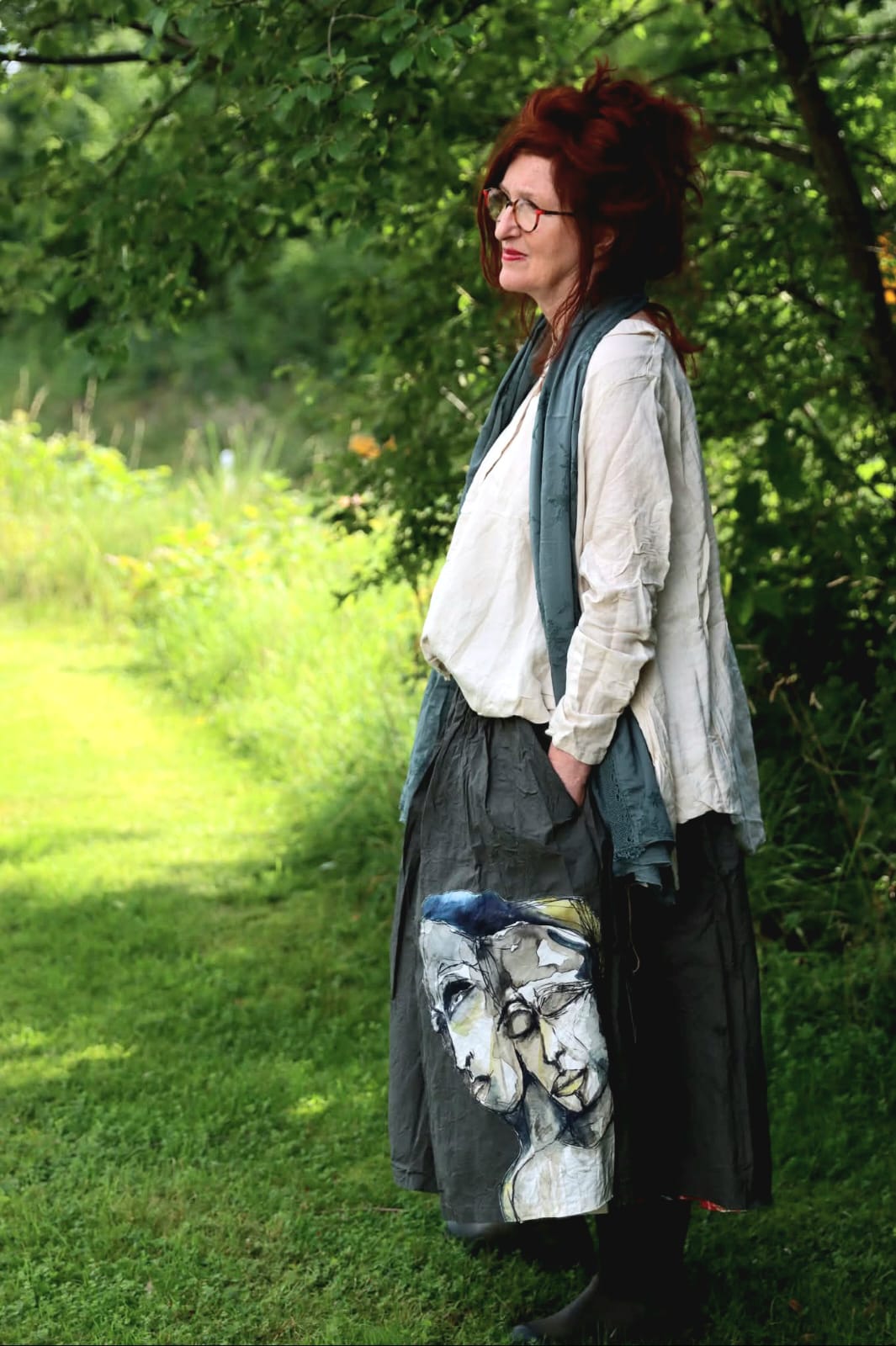MAJ-GULL ein Röckelchen mit wunderbarer Zeichnung von Ewa i Walla selbst. So ein ausgefallenes Kleidungsstück ist ja eher wie Schmuck. Optimal für den Herbst erfrischend gut. Gummizug und leichte A-Linie lassen den Rock zum Alllllltagsrock werden. Juchuuuuuuu Was diesen Rock für mich so schön macht ist die Zeichnung von Ewa i Walla und diese Länge wo du weißt kein Wind haut dich um