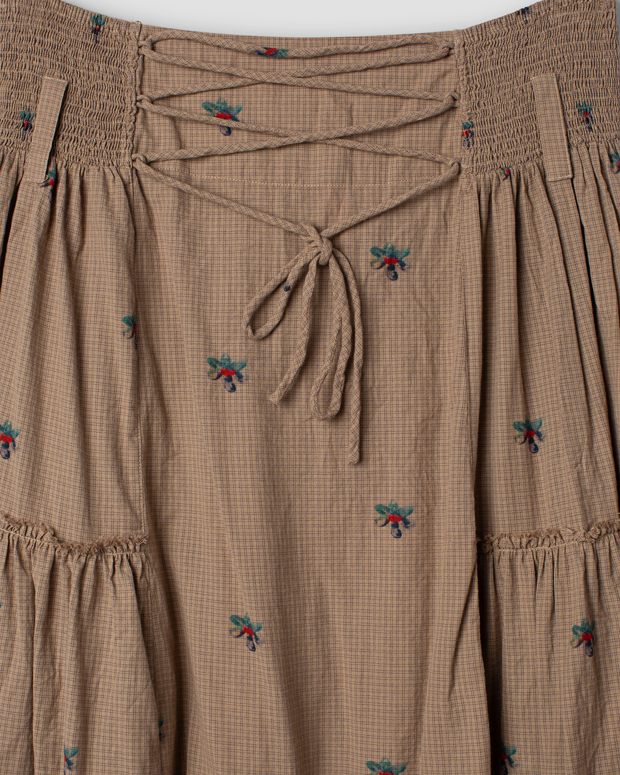 Margot ein guter Rock schlicht in der Form ohne großen Schnick und Schnack. A-linie und mit Schnüren im Rücken zum binden. Kleine Blümchen auf Karo